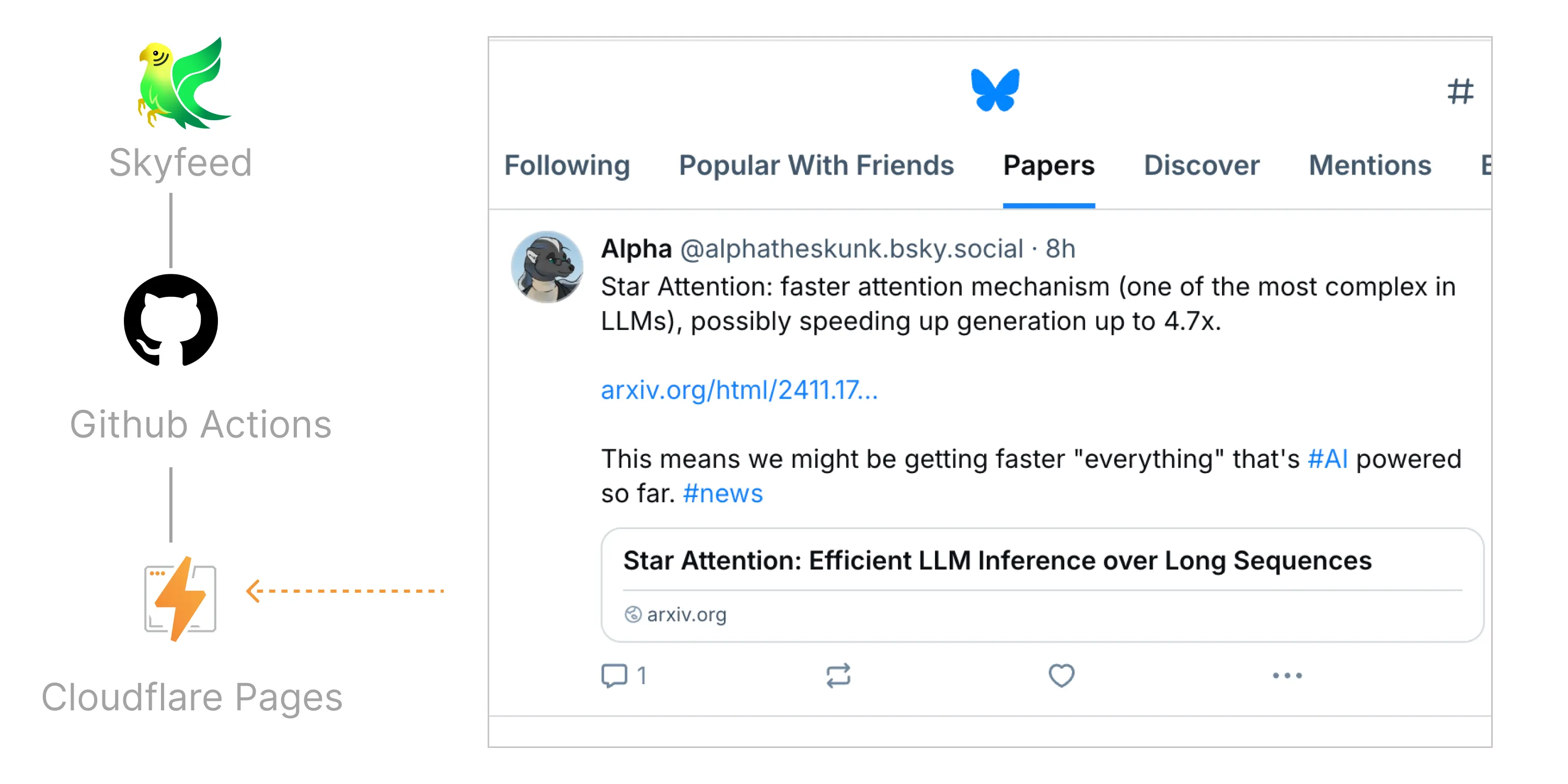 A simple stack for generating custom feeds for Bluesky programmatically without a backend server
