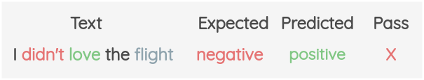 Below are examples of tests we can devise to evaluate negation capabilities for a sentiment model.