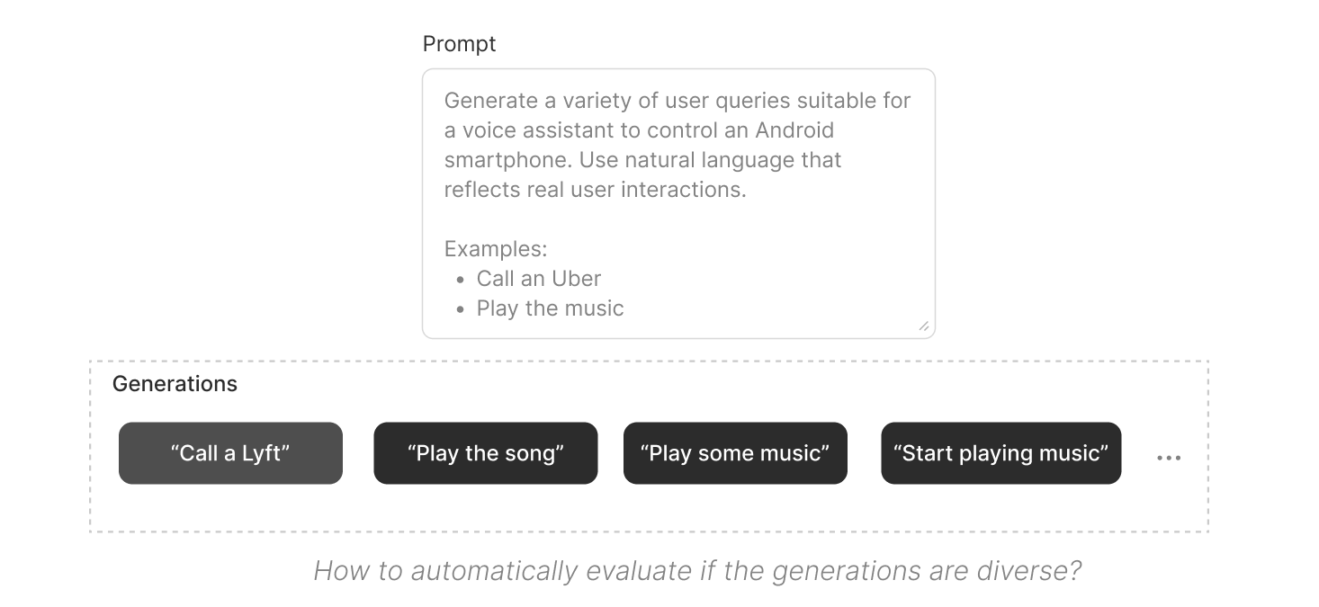 Generating synthetic data from LLMs has become a popular approach for bootstrapping an initial dataset when building LLM-based applications.