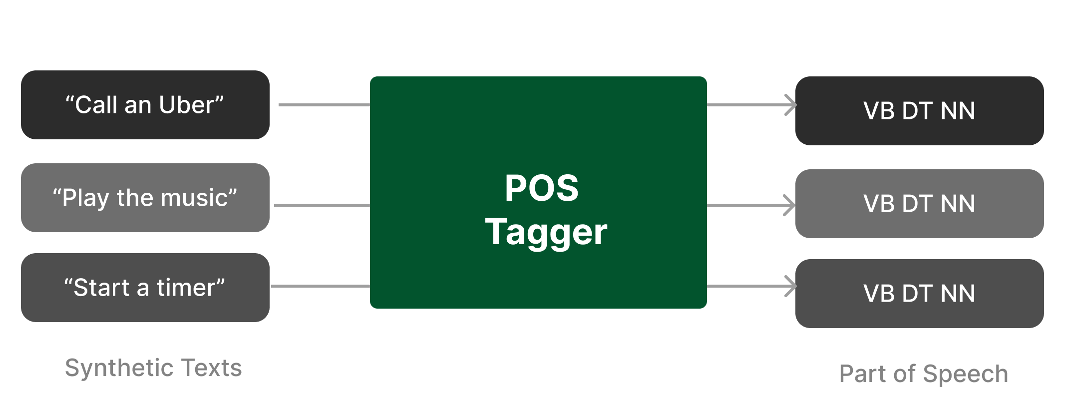 We apply a POS tagger to all the synthetically generated texts and get their syntactic representation as strings.