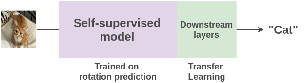 Once we learn representations from these millions of images, we can use transfer learning to fine-tune it on some supervised task like image classification of cats vs dogs with very few examples.